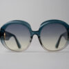 - Oversized round frame with a retro-inspired design.